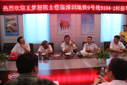 会议现场 10月13日,中国工程院院士、北京交通大学教授王梦恕视察指导了深圳地铁项目人民南工区和鹿丹村渡线隧道,中建南方投资有限公司总经理任强、总工程师肖龙鸽、深圳地铁项目指挥长彭斌、项目经理刘德的陪同。 在人民南站现场,王院士听取了项目副总工邝利军、项目经理刘德关于人民南站工程重难点的介绍,考察了现场周边环境,对现场成槽施工与钢筋笼制作等工艺进行了查看。王梦恕对中建五局深圳地铁项目人民南站旷古奇难表示感慨,对人民南站在如此艰难的条件下攻克技术难关、优化创新取得方案突破表示赞叹,对施工现场的有序表示肯定,并鼓舞现场工程技术人员再接再厉,现场出成绩,以大难度工程为载体,深入进行科研创新,科研出大成果。 随后,王院士到达鹿丹村站,在深圳地铁前总工,现中建五局深圳地铁项目专家顾问张家识的陪同下,亲临鹿丹村站后渡线隧道大里程端E断面掌子面视察。之后,王院士于项目会议室进一步听取了人民南工区总工邝利军就人民南总体策划、鹿丹村工区总工李金求就渡线隧道的专题汇报。王院士对项目施工组织、地连墙设计、现场施工工法工艺提出了宝贵指导意见,并就科研发展方向提出了建议。 本次五局借中建南方投资有限公司组织召开的“深圳9号线BT项目可研启动既科技示范工程、绿色示范工程启动仪式”大会召开之机,特地邀请工程院院士考察深圳地铁项目、进行现场指导和科技研发指导,为五局做好项目现场,致力研发国内领先、国际先进的科研成果提供宝贵经验指导。(邱琼) 注:王梦恕(1938年12月24日——)隧道及地下工程专家,中国工程院院士。毕业于唐山铁道学院获硕士学位。铁道部隧道工程局高级工程师、副总工程师;北京交通大学隧道及岩土研究所所长;北京交大隧道及地下工程试验研究中心主任、博导教授。兼任北京市、南京市、厦门市地下工程专业顾问、西南交大等 12 所大学的名誉教授和客座教授、4个学会常务理事、副理事长。