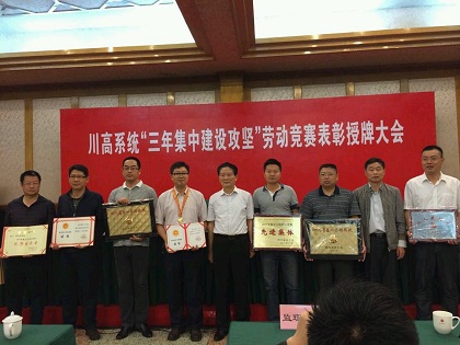 5月15日,在四川省泸州市南苑会议中心,项目经理肖玉奇从川高公司领导手中接过了为中建股份纳黔高速公路C4合同段项目经理部颁发的“四川省工人先锋号”牌匾。