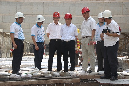 听取项目技术人员汇报和实际工程查勘后,刘卡丁表示深圳地铁9号线车站围护结构全部采用叠合结构,钢筋笼中预埋接驳器工艺比较复杂,人民南站叠合墙结构施工是样板。同时,刘卡丁对项目技术人员予以厚望,希望在人民南站在构件预埋安装、混凝土实体质量、钢筋制作与安装等方面成为9号线、深圳地铁三期工程建设中的样板工程。