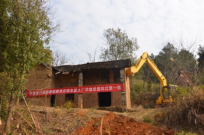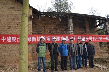 图为:房屋拆迁现场  图为:项目部拆迁工作人员与地方拆迁人员集体合影 12月31日上午,2014年最后一天,隧道公司怀邵衡铁路项目部经过两个多月的红线丈量、统计、分配等准备工作,位于邵东县火厂坪云汉村一栋土砌宅房,在机械的轰鸣声中应声倒地。该房屋的拆除,标志着隧道公司怀邵衡铁路征地拆迁房屋拆除工作率先在全线管段打响第一枪,为新年送上贺礼。 怀邵衡铁路管段总长21.284km,区间房屋集中,涉及邵东县三镇(火厂坪、杨桥镇、水东江镇)及20个自然村、拆迁面积21.7万平方米,此次拆迁的云汉村位于火厂坪镇,按照规划红线划分,火厂坪房屋征迁面积最大,涉及征拆户数最多,此次拆迁为后续房屋拆迁开了一个好头,到春节之前,邵东县火厂坪镇云汉村管段内房屋拆迁预计将全部拆除,因此火厂坪管段施工任务可以全面展开,为2015年施工生产大干起到很好的推动作用。(文/隧道公司怀邵衡项目:韩学斌 贺美 罗钢)