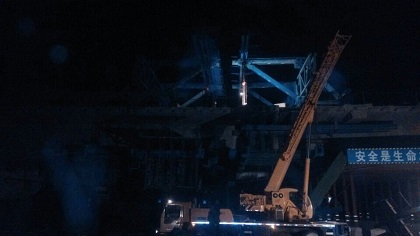 岭脚河1#双线特大桥连续梁顺利合龙 2014年1月4日上午6点,随着最后一方混凝土浇筑完成,隧道公司海西项目岭脚河1#双线特大桥连续梁顺利实现合龙。 岭脚河1#双线特大桥总长1220米,总计38个桥墩台,其中22号~25号墩为32+48+32m的连续梁。由于岭脚河1#桥是三亚制梁场架梁的唯一通道,为保证架梁通道的通畅,连续梁施工工期不断前压,工期紧、压力大;同时,所处地理位置条件也十分复杂;跨314省道,梁体上方有高压线。这些情况的存在,都给现场施工带来了一定的难度。 面对困难,海西项目群策群力,细致研究施工方案,从技术口突破,加快施工进度;要求所属劳务队增加足够的人员设备,确保节点目标完成。经过昼夜不间断地鏖战,终于在节点要求的时间内顺利完成合龙。 岭脚河1#双线特大桥连续梁顺利合龙,确保了架梁通道的通畅,对整个新建海南西环铁路T梁架设,以及上部铺轨工作奠定了良好的基础。 目前连续梁正紧锣密鼓的进行其余工序的施工。(文/海西项目:张俊杰)