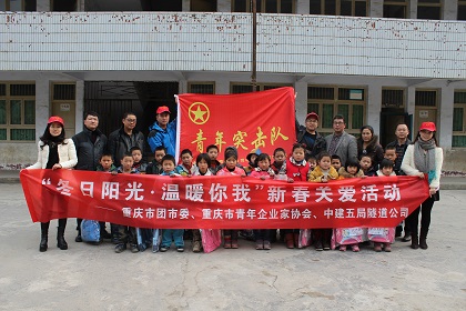 丛山村小学简陋的食堂和厕所  丛山村小学校  关爱留守儿童 我们在行动  孩子们收到的礼物  捐赠仪式现场 1月17日,重庆市团市委城市部副部长刘文洋与隧道公司工会副主席陈志斌携公司团委、工会小组及中梁山扩容项目的青年志愿者一行至重庆黔江区开展“冬日阳光·温暖你我”新春关爱活动,为贫困留守儿童带来了总价值5万元的学习生活用品,实现了黔江区留守儿童的500个心愿。 本次慰问活动选择了以黔江区舟白街道的丛山村小学为代表,为22名留守儿童捐赠了书包、篮球、文具等物品。捐赠仪式上,陈志斌表示希望通过此次捐赠活动传递正能量,让贫困地区儿童感受到社会的关爱,与其他的孩子一样健康幸福地成长,快快乐乐的过个新年。 据了解,丛山村小学许多孩子的父母外出务工后,便和爷爷奶奶一起生活。整个小学一共只有2名教师,他们在这里一直默默坚持教了二十几年的书,目前有1年级学生12名,2年级学生10名,一个老师负责教一个年级的所有课程。由于条件有限,孩子们从来没有上过音乐课和英语课,而且这里的学生大多数都住在很远的山上,每天从家里到学校要走近2个小时的路程。寒冷的冬天,孩子们大部分都穿着单薄陈旧的棉衣,不少孩子的手上都长满了冻疮。 隧道公司始终坚持履行国企社会责任,每年均会与重庆市团市委、工会共同开展各类扶贫助困爱心活动,公司一直用“超英爱心基金”的大爱为这个寒冬送来阵阵暖意,先后为雅安地震中的高山儿童送去救灾物资、为大足、忠县、黔江的留守儿童送去关爱、带大新小学的留守儿童游览科技馆、为鹿鸣小学捐赠超英爱心图书室等等。接下来,公司将会招募越来越多的志愿者加入,继续爱心活动,为留守儿童带去更多的温暖。(文/隧道公司机关:赵澳瑶)