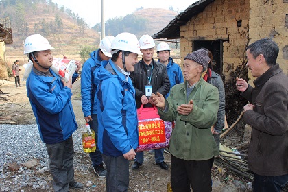 图为:当地五保户和怀邵衡项目三分部慰问人员拉家常 新年伊始,在春节即将到来之际,隧道公司怀邵衡铁路项目三分部利用施工档期,来到邵东县水东江镇六户五保户为他们送去了营养品和防寒用品,送去了温暖,“暖”了人心。 当天,怀邵衡铁路项目三分部领导通过向邵东县水东江镇政府了解了水东江镇附近村寨的低保户情况后,便挨家挨户进行慰问,他们不但送去了物资慰问品,还送去精神上的关怀。他们陪老人聊天,询问老人的身体健康、生活起居等情况,并嘱咐老人要保重身体、注意适时添衣保暖。房间里一片欢声笑语,其乐融融。今年已经82岁的王大爷说:“我在这里住了快30年了,新年里,能看到中建五局的铁路建设者来关心爱护我们,让我们倍感温暖。” “百善孝为先,关爱老人是每个公民义不容辞的责任,今后我们仍把敬老、爱老的优良传统发扬下去,让更多老年人感受到来自大家的温暖。”三分部经理叶金书说。 此次怀邵衡项目部三分部温暖行动,是项目部新年大举进行征地拆迁工作之时,为联动地方,搞好地方关系,展示央企形象,传递正能量而举行,同时也是为了给弱势群体送上温暖和关爱,为建设和谐美好的邵东,促进当地经济发展,送上我们怀邵衡项目的关怀,尽一份绵薄之力,也传递了中建五局“信·和”文化。(文/怀邵衡铁路项目:韩学斌 叶金书 罗钢 )