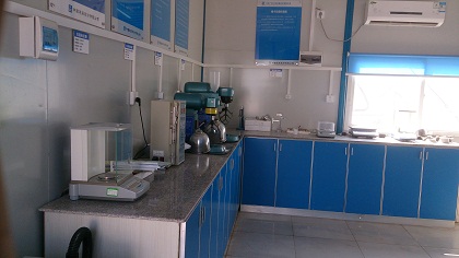渝黔9标中心试验室根据标段工程特点及合同规定,是有资质的母体试验室,山东广信工程试验检测有限公司的派出机构。中心试验室设立于贵州省遵义市红花岗区迎宾大道东侧,这里处于管段的中部且交通便利,并在各工区建立了试验分室,各分室安置于工区搅拌站内,设置了专职的检测人员以及必要的设施和设备,便于开展监测工作。试验室设集料室、土工室、耐久性室、化学室、现场检测室、力学室、胶材室、混凝土室、防水卷材室、标养室切割磨平室等共14间。