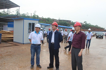 周荣一行首先查看了项目最先开工的茶子山隧道,仔细询问了人员配置、设备配置情况,同时进到茶子山隧道掌子面仔细查看了隧道的进洞情况,对目前工程进度,安全、质量总体表示满意,并且特别“点赞”了茶子山隧道工序施工、洞口标准化建设、场地布局、文明施工。随后又马不停蹄参观了岩面前隧道,看到正在进行隧道洞门施工,脸上露出满意的微笑,进入掌子面查看进度情况时,对怀邵衡铁路项目团队做了点评:很努力、很想把怀邵衡铁路干好。当周荣走到岩面前隧道洞口时,停下脚步,召集随行人员再次“点赞”岩面前隧道的工序施工、标准化建设、场地布局、文明施工,并且说道:“中建以后就这么干!”