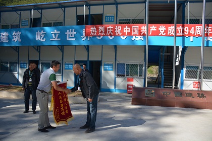 卓克基镇镇长任德福向项目经理蒋莉斌送上锦旗