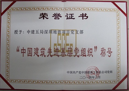 深圳地铁项目自2012年成立党支部以来,以创建典范型、文明型、学习型、爱心型、幸福型“五型”,扎实开展争先创优工作,充分发挥党组织的战斗堡垒作用和共产党员的先锋模范作用,促进党的作风和纪律建设。党员领导干部带头,项目党员严于律己,相互监督,立足本职工作,真抓实干,攻坚克难,同时项目党组织积极开展丰富多彩的活动,不断增强党支部的创造力,凝聚力和战斗力。