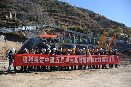 各级领导合影留念  各级领导齐聚为汶马项目送上祝福  机械就位,正在准备鞭炮,为卓克基隧道出口右线进洞鸣响 “欢迎各位领导莅临中建五局隧道公司汶马高速C24标卓克基隧道出口参加右线进洞仪式!现在,我宣布,卓克基隧道出口正式进洞!”随着项目经理蒋莉斌的一声高喊,鞭炮声响起,卓克基隧道出口右线正式开始进洞施工。 卓克基镇镇长任德福代表当地政府、当地百姓为项目送来了感谢与祝愿,感谢中建五局在卓克基的建设,祝愿项目能做到施工安全、质量好、进度快。马尔康县交通局副局长兼汶马高速马尔康县协调办主任仁青罗尔依对卓克基隧道出口右线进洞表示由衷的祝贺,这也是马尔康县协调办工作的一大成绩,在今后的协调工作中也会一如既往地大力支持汶马高速的建设。 马尔康段业主代表处副处长李龙确首先对卓克基隧道出口右线顺利进洞表达由衷的祝福,然后是感谢马尔康县各级领导对汶马高速建设的大力支持,感谢汶马高速C24标所有奋战在一线的参建人员的辛勤付出,卓克基隧道出口右线的顺利进洞标示着汶马高速C24标隧道工程的全面施工开始,最后祝愿项目能在保证安全、质量、进度的前提下,早日贯通。 隧道公司汶马项目施工进度的快速推进离不开各级领导的大力支持与帮扶指导,项目上下唯有以踏实肯干的态度保质、如期、安全地搞好汶马高速公路建设,向全州人民交上一份满意的答卷。(文/隧道公司汶马项目:王晓梅)