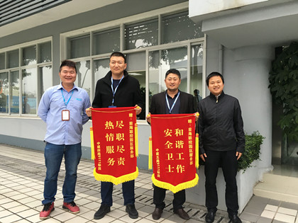 1月20日下午两点,隧道公司深圳地铁9111项目代表中建五局携手四局对前海联控园区服务部赠送了两面锦旗,以感谢前海联控园区服务部对9111标段的建设所作出的贡献。 在一年以来的工作过程中,前海联控园区服务部对我们热情服务、尽职尽责,不断强化9111标段临海路站、振海路站现场管理和园区公共秩序,使前海园区秩序井然,工程建设“忙而不乱”、安全有序,为项目实现全面施工生产大干提供了强有力的保障,并合力推动了深圳地铁三期工程建设。因此,深圳地铁9111项目送上了写有“安全卫士,和谐工作”的锦旗,表达对前海联控园区服务部的感激之情。(文/隧道公司深圳地铁9111项目:喻洋)