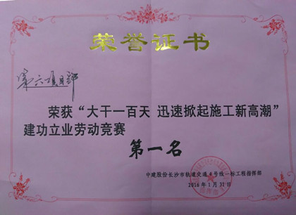 “大干100天”劳动竞赛第一名 2016年开年之际,隧道公司长沙地铁4号线项目捷报频传,硕果累累、奖状多多。在1月31日的长沙市轨道交通4号线指挥部“大干100天”劳动竞赛表彰会以及长沙市轨道交通集团有限公司“2015年度总结表彰暨员工风采展示大会”上,隧道公司长沙地铁4号线第六、第二项目部分别获得“大干100天”劳动竞赛第一名、第三名,第二项目部荣获业主“轨道杯”考评“先进集体”荣誉称号,指挥部1月份综合考评第一名。项目常务副经理柳伟、第二项目部总工胡德荣获长沙市轨道交通集团“先进个人”称号,第六项目部综合办副主任叶一乐获得指挥部“2015年度优秀通讯员”称号。 项目部从开工至今,一直以技术创效为龙头、以协调改迁为前提、以生产履约为基础、以商务管控为抓手,全面推动项目管控与生产建设,在2015年度取得了一系列的好成绩:全线临建标准化示范点、长沙市内外地铁施工领域观摩交流平台、指挥部综合考评连续蝉联第一、“15个第一”引领全线,综合线条考评稳居首位“一路6到底”。 2015是奋斗的一年,也是收获的一年,长沙地铁4号线项目将继续秉承着标杆精神、承载着局建设“两个排头兵”的光荣使命,锚定更远更强的目标、戒骄戒躁,整装再出发,向着2016年继续前进。(文/隧道公司长沙地铁4号线项目:叶一乐)