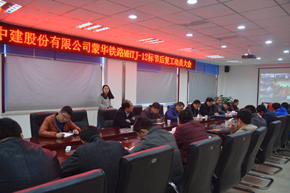 2016年2月18日,隧道公司蒙华铁路项目部召开春节复工动员大会,项目部及三个工区班子领导参会。 会上,项目部领导对2016年整体工作做了全面部署,进一步明确了本年度以全员参与为基础、以产值进度为龙头、以安全质量为保证、以重奖重罚为激励、以实现效益为目标的“五个以为”总体思路。再次明确了各个重大节点目标任务。随后,对各项任务提出了具体要求,对整个项目工程中的质量、工期、施工难点、重点以及存在的困难等做了分析,确定了近期工作目标。 2016年是蒙华铁路项目建设的关键之年,项目部要求各工区要从大局出发,采取各种措施、克服各种困难,积极组织人员、设备、物资等资源要素进场,迅速掀起大干高潮,以时不我待、只争朝夕的昂扬斗志,在保证质量和安全的前提下,千方百计加快工程进度,如期完成各项目标任务。(文/隧道公司蒙华铁路项目:李宁)