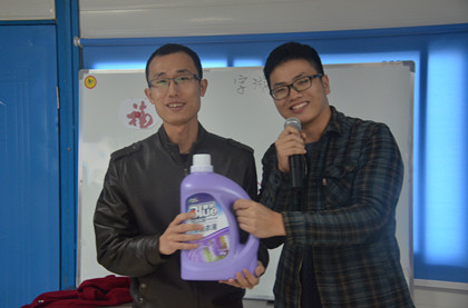 “浴室歌神”献唱  抱得洗衣液归  抽奖环节的幸运儿 2月22日,隧道公司长沙地铁4号线项目大食堂传来一片欢声笑语,项目全体管理人员齐聚一堂共度元宵佳节,欢呼声、喝彩声不断,大家的热情差点将食堂屋顶掀翻。 穿过项目,来到食堂,一桌桌可口的饭菜,一张张温馨的笑脸,都在展现着大家在这万家团圆的元宵节过的是如此充实。项目团支部书记颜浩东作为本次活动的主持人,他幽默风趣的主持也让大家对这个平常埋身一线的施工员小伙子刮目相看。在项目工会组长许敦亮简短的致辞后,本次“真抓实干、再创辉煌”元宵活动正式宣告开始。 项目的“浴室歌神”曹小鹏首先为大家带来了一首猴年本命歌曲《悟空》,在一片叫好声中,曹小鹏应大家要求,再次献唱一首励志歌曲《老男孩》;第二个节目,由项目“机器人”叶一乐为大家表演机械舞,博得了全体管理人员的一阵喝彩。随后的“摸福字“小游戏更是掀起了本次活动的小高潮,游戏规则是由现场主持人随机抽取8名员工上台,蒙上眼睛原地转3圈,向着前方贴有福字的白板前进,摸到福字的即可获得项目提供的小礼品一份,没有摸到的则要接受惩罚,从项目“boss”们到后勤人员都有代表上场参与,每轮游戏开始,鼓掌加油的、帮倒忙的,场下好不热闹。最后的抽奖环节为活动划上了完美的句号,福利虽小,但心意满满。 项目常务副经理柳伟在活动结束后说到,在过去的2015年,长沙地铁4号线第六项目部取得了诸多的优秀成绩,面对崭新的2016年,项目部全体人员应卯足干劲、奋勇拼搏,在新的一年里取得更加辉煌的成绩!(文/隧道公司长沙地铁项目:叶一乐)