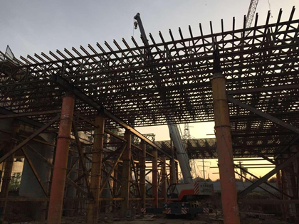 首孔贝雷架吊装 5月4日,在这个有着不同意义的五四青年节的日子里,伴随着吊车机械臂缓缓落下,一组贝雷架准确进入预定位置,汉十铁路项目二标段孝感东站2-5号墩首孔贝雷架吊装成功,标志着2-5号墩施工有序地进入连续现浇箱梁施工阶段。 此次吊装的单跨贝雷架长32米、高1.5米,吊装处墩身高12.5米,由两台25吨吊车协同作业。箱梁按照3~5跨组成一联,采用逐跨施工、预应力单端张拉连接成联设计。此次贝雷架吊装成功,为项目快速推进孝感东站2-5号墩施工,圆满完成“大干一百天”、“6· 15”孝感东站达到联调联试目标奠定了坚实的基础。(文/隧道公司汉十铁路:黄芳)