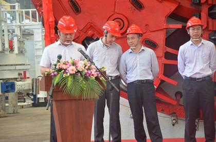 中建五局隧道公司党委副书记、纪委书记詹畅生先生和隧道公司副总袁晏仁先生与盾构工区南京监造人员合影  中建五局隧道公司党委副书记、纪委书记詹畅生先生讲话 5月6日上午,中建五局 “信和六号”盾构机下线仪式在徐工集团凯宫重工南京有限公司制造基地隆重举行。徐州市城市轨道交通有限责任公司副总经理张昌伟,中建华东投资有限公司执行总经理杜名赞,隧道公司党委副书记、纪委书记詹畅生、副总经理兼徐州地铁项目经理袁晏仁、物资部经理邓尤松、盾构分公司副总经理徐长胜等出席仪式 。 “信和六号”盾构机为德国海瑞克土压平衡盾构机可用于多种复杂地层,专为徐州地铁复杂地段、穿越建构筑物及铁路运营线打造而成,是助力徐州地铁工程建设的关键装备,承担着徐州地铁1号线四个区间的掘进使命。盾构机开挖直径6480mm, 全长80m,重达500余吨,最大掘进、推进速度80mm/min,最大工作压力4.5bar。在945KW功率、9液压马达的工作条件下,刀盘额定扭矩达到6228KNm,脱困扭矩达到7447KNm。 隧道公司徐州地铁项目盾构区间地质和水文条件复杂,特别是3标盾构区间穿越全断面硬岩、全断面砂层、全断面粘土层、上软下硬地层、岩溶地层等多种复杂地层,并穿越徐州火车站、黄河故道及大马路桥和多处建构筑物,同时3标盾构区间也是1号线全线洞通关键节点。“信和六号”盾构机的成功下线,为中建五局在徐州地铁1号线的盾构始发及掘进奠定了坚实的基础,也大大增强了我们按期完成盾构关键节点的决心。 盾构机如期顺利下线,为地铁施工的顺利推进提供坚实的保障,也将为徐州地铁一号线早日贯通、顺利通车立下汗马功劳,在徐州地铁史上写下辉煌的篇章,同时推进中建五局地铁施工更好更快的发展。(文/隧道公司徐州地铁项目:张灯松)