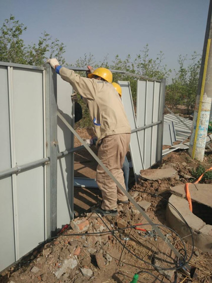 现场围挡修复完善  现场围挡遭受严重破坏  项目部立即组织人员进行修复 青岛的天气就像小孩子的脸,说变就变。近日,青岛地区北风6到7级,阵风8到9级,沿海地区阵风9到10级。在收到青岛市气象台的蓝色预警后,隧道公司济青高铁项目立即发布预警,要求现场立即停止所有高空及吊装作业,人员不得在广告牌及临时搭建物下逗留。并组织相关人员对现场活动板房、钢筋加工场及拌和站等临建设施的防风措施开展全面排查,排除多处现场隐患。 处于一线的管理人员深刻的感受到了这次大风所带来的负面影响,施工现场多处围挡及基坑防护栏杆被掀翻,部分广告牌已严重变形,大风过后现场一片狼藉,形象遭到严重破坏。 大风之后,项目立即组织开展现场隐患整改工作,对于遭到严重破坏的围挡及基坑翻翻护栏立即进行修复并采取加固措施,经过两天全力奋战,施工现场形象得以恢复,消除了灾后的安全隐患,保障了日后更好的开展安全生产工作。 “安全责任,重于泰山!”,济青的管理人员始终把这八个字铭记于心,这个责任,不仅仅关系着我们的企业,更与我们自己息息相关,作为济青战线的一员,我们定会在日后的工作中再接再厉,为济青项目的安全保驾护航。(文/隧道公司济青高铁项目:张锋)