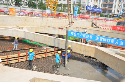 顶板混凝土浇筑  中板钢筋绑扎 距隧道公司长沙地铁四号线一标二项目部530动员大会已经过去一个星期,在二项目汉王陵公园站全体管理人员及劳务队员的努力拼搏下,原定于5月30日完成前车站前六段主体,有望在5月16日提前完成。 汉王陵公园站一直是四号线的标杆项目,不管是施工质量还是施工进度,都排在前列。这与项目领导班子亲临现场以身作则和广大工作人员废寝忘食的奋斗是分不开的。 不论是艳阳高照还是大雨倾盆,外部条件丝毫不能影响广大工作人员的工作热情。土地清平、浇筑垫层、编织钢筋……每一项工作都在有条不紊而又迅速地进行着。在保证施工进度的同时,项目并没有忽略安全质量工作,仍然把安全和质量当做工作重点,每天早上的班前安全教育和新进场工人的安全培训是施工安全的有力保障,而全体施工员的认真负责,则保证了施工质量。 项目上下必将拿出十二分勇气和毅力,不但要在保证安全和质量的前提下完成所有预计的节点任务,还要尽一切可能提前完成节点目标,因为隧道人要做就要做到极致,做到最好! (文/隧道公司长沙地铁4号线项目:尹瑞琪)