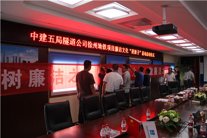 会议现场  隧道公司党委副书记、纪委书记詹畅生和项目班子现场签订廉洁从业承诺书  项目班子成员纷纷在廉洁横幅上签字承诺,人人参与,共建阳光工程 5月5日下午,隧道公司徐州地铁项目积极响应公司廉洁文化建设号召,在彭城广场站大会议室举行廉洁文化“进班子”活动启动仪式。隧道公司党委副书记、纪委书记詹畅生、项目班子参会,会议由项目书记兼总会计师金雷汉主持。 会议首先由项目综合办主任夏露宣读公司与项目签订的党风廉政建设责任书,明确相关的责任,紧跟公司的步伐,坚决落实各项责任制。随后金雷汉宣读隧道公司徐州地铁项目廉洁文化“进班子”实施方案,对项目全年的廉建工作进行了详细的部署,明确了全年的工作目标,并成立了相关的组织机构,为全面开展廉洁共建阳光工程打下基础。接着,詹畅生和项目班子现场签订廉洁从业承诺书,将廉洁落实到实处,杜绝“走形式”,寄语徐州地铁项目:廉政建设,廉洁从业,打造阳光工程,树立全线标杆。 隧道公司副总经理兼项目经理袁晏仁表示:徐州地铁项目将全力打造阳光工程,杜绝“苍蝇式”腐败,营造健康向上的团队氛围,争创全线标杆,为公司跨越性发展添动力,为助力“市场营销”、拓展华东市场添加硬实力。 最后,詹畅生宣布仪式启动,项目班子成员纷纷在廉洁横幅上签字承诺,人人参与,共建阳光工程。(文/隧道公司徐州地铁项目:陈思思)