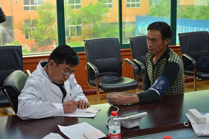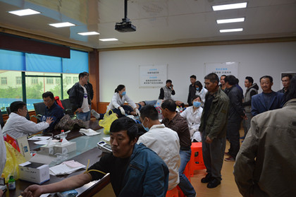 忙碌的体检  医生正在为一名工人量血压 5月14日至15日,隧道公司济青高铁项目部组织216名劳务工人进行了健康体检。 为使务工人员快捷、便利的参加体检,项目部将体检医生请进了会议室,并带来了各类检查仪器。体检项目包括内外科、血常规、彩超、血压、心电图等多个项目。 “医生检查得好认真哟,我出来打工20多年了,这还是第一次免费参加体检咧,真的谢谢领导,谢谢你们了哈,这下我放心了,家人也放心!”一位来自重庆的师傅用朴实的家乡话如此感激的对我们说到。现场医护人员还认真讲解了疾病防治以及职业病预防的相关知识,及时纠正不良生活习惯,减少疾病的发生。本次体检里,项目部还为进场的每位务工人员建立了个人健康档案,后期将结合个人健康情况适当调整工种,安排与其相适宜的工作,切实保护农民工的利益。 广大民工兄弟作为施工生产的主力军。长期以来,隧道公司始终积极践行“五同原则”(政治上同对待、工作上同要求、素质上同提高、利益上同收获、生活上同关心”),将农民工视为自家兄弟,尊重每一位农民工的辛勤劳动。济青高铁项目积极响应,将关爱农民工、加大对农民工身体健康保护作为日常工作的重中之重,并把该项工作纳入职业安全防护的管理体系,为农民工身体健康提供了强有力的支持保障。 此外,济青高铁项目还通过创建“信•和”夜校、组织项目管理人员同施工人员积极参加技能比武活动、把“送清凉,送温暖”等活动常态化等一系列手段,减缓他们的工作压力,提升农民工的幸福指数,构建企业与劳务和谐共赢的局面,携手共拓幸福空间。(文/隧道公司济青高铁项目:陈志新)