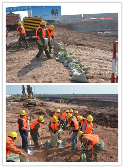 讲解演练注意事项  齐心协力,演练达到预期目的 为了贯彻落实上级文件有关安全管理要求,本着对工程负责、对员工负责的态度,按“安全第一,预防为主,防治结合,综合治理”的施工思路,坚持事故灾难应急与预防工作相结合的原则,针对中建股份有限公司济青高铁项目部一分部胶州机场隧道工程施工环境、安全风险较大的不利局面以及合同段内近期多雨的季节特点,项目于5月17日组织实施防洪防汛演练。此次演练共出动20名抢险队员,应急救援车2辆,救生衣、铁锨、沙袋等应急物资若干。 下午3点左右,防汛演练现场指挥长臧文涛通知开展防汛演练,各小组组长迅速行动,通知人员并合理分工。10分钟内所有人员、车辆及设备全数到位。演练开始前,指挥长臧文涛向全体人员强调了防汛应急演练目的以及注意事项。 演练假设大雨来临,机场隧道基坑水位上涨,汛情紧急。各队员迅速各就各位,在各组组长的安排下分工协作,第一小组队员及时处理现场,设置警戒,快速疏散现场人员及车辆;第二小组队员齐心协力,共同协作利用防汛工具紧急排险,有效排除现场积水。抢险结束后,机械设备有序撤离现场。 项目部通过开展此次有针对性的防汛抢险应急演练,进一步夯实了施工人员的应急抢险能力,提升了各应急小分队在天气恶劣环境下的协同抢险能力,为有效处置城区汛期突发事故的抢险救援奠定了基础。演练过程中抢险人员个个精神饱满,操作准确迅速,执行命令果断坚决,各环节协调配合连贯到位,充分展现了抢险队员的应急救援能力,使演练活动取得了圆满成功。 演练结束后,臧文涛就演练中存在问题进行了讲评,要求所有人员要从思想上加强防汛及应急救援工作的责任感和紧迫感,随时做好“打大仗、打恶仗”的准备,确保在灾害事故来临时做到出动迅速、处置快速,最大限度保障人民生命财产,减少灾害事故造成的损失。 项目全体员工能以本次事故应急救援演练为契机,进一步把项目的安全工作做好、做实,把各种安全隐患消除在萌芽状态。(文/隧道公司济青高铁项目:张锋)