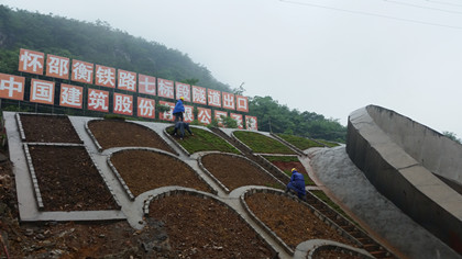 茶子山洞门  穿雨衣铺草皮 “这个洞门做得漂亮!”隧道公司怀邵衡项目七标段现场监理工程师如是说,无疑是对项目施工能力的肯定。而洞门形象漂亮,成为了名副其实的一张名片。 春夏多雨,怀邵衡茶子山隧道外面雨水淅沥,项目部工人披着雨衣劳作成为了一道常见的风景线。从洞门背部回填混凝土面找平修坡,接着回填土的分层夯实,然后拱型骨架施作,最后铺草皮,他们克服了连续性雨天的影响,有条不紊的精心组织作业,忙碌的身影犹如在山林作一幅山水画。 洞门上方的“中建建筑”几个大字,在一片绿色簇拥中显得尤为亮丽。怀邵衡项目将继续秉持“绿色建造,环境和谐为本”的企业理念,注重环境保护,坚持绿色生产,为一方青山绿水做出积极贡献。(文/隧道公司怀邵衡铁路项目7标二工区:谢小明)