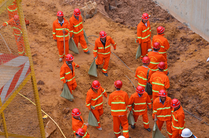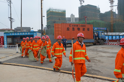 积极抢险  技术保障组商量处理方案  两专一特抢险队  全军出击  向指挥部汇报险情 5月24日,在长沙市轨道交通4号线一标工程指挥部举行的“安全生产月”启动仪式上,隧道公司长沙地铁4号线溁湾镇站举行了“基坑失稳、涌水涌泥”应急抢险演练,长沙市建筑工程安全监察站站长王顺、长沙市轨道交通4号线建设发展有限公司副总经理谷志勇、长沙市轨道交通4号线一标工程指挥部常务副指挥长彭鸿志、党委书记欧阳志、安全总监罗明、中建五局基础设施部安全总监丁进良、西安铁一院湖南湖大监理一标联合体总监陈四为、长沙地铁4号线全线七个项目部代表、劳务代表等近100余人参与了此次演练。 上午10点,演练正式开始。溁湾镇站在基坑开挖过程中,测量组成员发现车站南端西侧多出监测点出现黄色预警,成员当即向项目常务副经理柳伟报告情况。柳伟在要求测量组加强监测的同时收到了南端区段长唐诚的报告称基坑开挖断面出现小股涌水,项目当即启动应急预案,拉响警报并安排人员撤离作业面所有施工人员至安全地带。技术保障组、抢险救援组、维稳宣传组、后勤及医疗保障组、善后处理组、事故调查组等6个应急救援小组立马赶赴现场进行抢险。在抢险过程中,项目应急救援组向4号线指挥部反馈险情,指挥部组织抢险救援组与“两专一特”专业抢险队赶赴现场配合抢险。最终,在大家的配合下,溁湾镇站基坑险情得到了有效控制,整个演练过程中,由于抢险及时,各救援单位组织得当,最大限度的减免了人员伤亡与财产损失。 王顺与谷志勇在演习结束后进行了点评。王顺表示:本次演习体现了应急抢险过程中的统一指挥、综合协调、分级负责,大家精神饱满,圆满地完成了本次应急演练。此外,他还建议,将来开展演习可从不同情况、不同场景进行考虑,增加演练的实战性。谷志勇则评价本次演习紧扣主题,希望全线各项目能建立健全预警机制,凡事预则立,不预则废,预警机制是控制安全生产的关键。 本次“基坑失稳,涌水涌泥”应急演练是4号线启动“安全生产月”的第一项活动,接下来全线将陆续开展“安全生产宣传教育月”、“安全生产活动月”、“安全生产总结提高月”,旨在重点落实安全生产管理,确保全面实现“0事故、0伤亡”的安全目标。(隧道公司长沙地铁4号线项目:叶一乐)