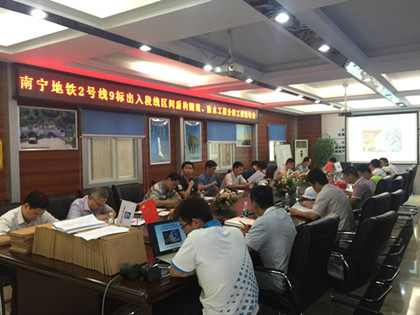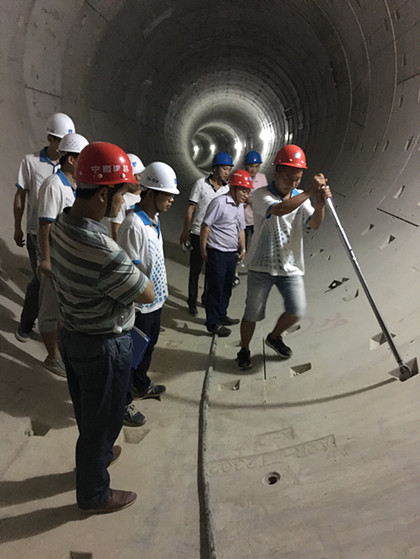 盾构隧道防水工程分部工程验收会现场  领导现场检查 5月23日,由隧道公司承建的南宁地铁2号线西津站至安吉综合基地出入线段盾构区间分部工程一次性顺利通过验收。 南宁地铁2号线最难区间西津站至安吉综合基地,由规划路与安吉大道十字路口设置的西津站引出沿安吉大道北方向东转至安吉综合基地接收井,区间双线共长1029.68m。盾构区间沿线面临小半径掘进、浅埋下穿房屋段、大纵坡段、浅覆土段以及下穿沿线布设的雨水管。难点多、工期紧是首要克服的难点。2016年1月4日,盾构机安全通过下穿房屋段,房屋最大沉降量仅为8毫米,地面、商铺均没有产生任何裂缝;2016年3月15日,出入段线区间右线顺利贯通,并提前2个月实现双线贯通。 由业主、监理、设计、勘察等专业人员组成的验收组,对盾构隧道、防水工程进行分部验收,并一致认为:西津站至安吉综合基地盾构分部工程施工资料齐全、准确,施工原材料经检验全部合格,工程实体外观质量整洁、平整。经各方单位的检查验收符合设计、规范要求,具备验收条件,同意验收。 出入段线盾构的顺利验收得力于9标项目部的高度配合,项目班子有效的工作安排以及西津工区全体收尾人员的辛勤付出。此次验收的优秀表现,为下一步安西区间的盾构完美收官奠定坚实的基础!(文/隧道公司盾构分公司南宁地铁西津工区:刘浩)