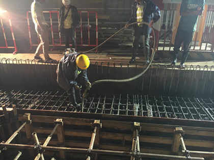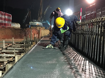 冠梁浇筑混凝土  罐车进场开始准备灌注  浇筑完毕,进行抹面 6月2日晚23时,隧道公司长沙地铁5号线二标五工区项目部蟠龙路站首件冠梁顺利完成浇筑。 项目领导高度重视此次首件冠梁施工,每天24小时现场坐镇指导工作,现场施工人员和劳务工人干劲十足,经过两天钢筋绑扎与支模的艰苦奋战,顺利完成浇筑。 为确保首件冠梁顺利浇筑,项目部积极优化施工组织方案,在控制质量的前提下,有效地提高了施工进度;同时,项目部严格实施工程首件制,细化施工流程,做到高标准、严要求,并形成文件,为以后的冠梁施工做好样板引路;项目部还成立安质检查小组,加大对施工现场安全、质量隐患的排查力度,形成问题库,逐一整改,现场施工员签责任状,自我加压,确保施工生产“不返工、零误工”完美结局。 “措施得力,管理到位,组织合理”,在业主和监理的联合检查中,项目得到一致好评,为今后工作的开展增加了信心,全体员工摩拳擦掌,准备迎战下一个关键节点!(文/隧道公司长沙地铁5号线项目:胡勇超)