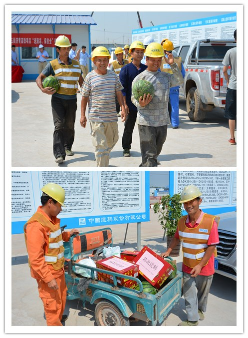 工人们满意而归 6月下旬以来的青岛气温持续攀升,为做好工地上的夏季防暑降温的工作,切实维护农民工兄弟的安全和健康权益,营造健康、安全、和谐的生产环境,确保农民工兄弟全身心投入到安全生产工作中,隧道公司济青高铁项目开展了2016年首次“送清凉、保安全”活动,给战斗在酷暑上线的农民工兄弟送去防暑降温物品。 近日,项目执行经理张大伟带领总工陈高生、安全总监藏文涛、各部门经理一行给工友们送去了藿香正气水、板蓝根、风油精、矿泉水等防暑降温的物品。项目工会还拨出5000元专项资金购买西瓜亲自送到了350名工人手中,为炎热的工地送去了一份问候,一份夏日的清凉,感谢他们开工以来为济青高铁项目一分部施工建设所做出的积极贡献,同时也要求各部门,各施工单位负责人结合隧道公司下发的关于加强夏季安全管控的通知,认真抓好防暑降温的工作,合理安排施工人员的作息时间,调整好饮食,改善劳动条件。 此外,项目综合办公室自六月开始在工地每天安排熬制清凉的解暑凉茶、为每间劳务宿舍均挂上了空调、根据劳务工人人数合理为其安排每间宿舍人数……每一处小细节无不彰显着央企尊重劳动者、关爱劳动者的社会职能,凉爽着如火如荼的施工现场,同时感动着每位工友的心。 据悉,项目工会还将在7-9月每月集中开展一次“送清凉”系列活动,张大伟强调:大家在高温作业下,一定要坚持安全施工标准化,并提高自我保护意识和能力,确保安全第一、预防中暑,保证各项工作有序展开。同时要紧抓工期,高效施工。(文/隧道公司济青高铁项目:张月清)