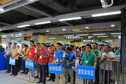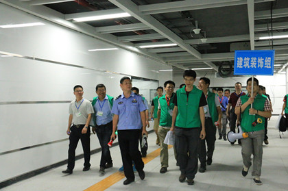 消防警官进行分组检查  消防检查各专项小组 2016年7月18日下午,深圳市消防局领导对深圳市城市轨道交通9号线进行首批车站消防检查,本次检查共6个站点,其中由隧道公司承建的鹿丹村车站、人民南车站均顺利通过此次验收。 消防验收是指消防部门对企事业单位竣工运营时进行消防检测的合格调查,施工单位进行消防验收时需要消防局进行安全检测排查,同时需要出具电气防火检查合格证明文件,主要验收内容包括总平面布局和平面布置中涉及消防安全的防火间距、消防车道、消防水源、建筑的火灾危险性类别和耐火等级、建筑防火防烟分区和建筑构造等。 本次消防验收主会场为鹿丹村车站,因此为做好本次消防验收工作,项目部出动全体管理人员团结一致、互帮互助进行多次内部检查,并全员参与布置会议现场,对消防验收工作进行细化处理,确保消防验收顺利通过。 隧道公司深圳地铁项目已进入收尾阶段,项目将全力以赴,打好打亮收官之战,为进一步擦亮五局市场品牌、开拓营销局面奠定坚实基础。(文/隧道公司深圳地铁项目:毛金权)
