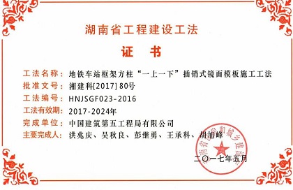 针对地铁车站及附属施工方柱加固繁琐,效率低、外观质量缺陷多的特点,2016年,中建隧道长沙地铁4号线汉王陵公园站项目对地铁车站框架方柱“一上一下”插销式镜面模板施工技术展开研究,使安装流程更简单、更迅速,脱模后混凝土外观达到镜面效果,成功避免传统方柱加固繁琐、效率低、外观质量缺陷多的诟病,并于近日成功申报湖南省工程建设工法。