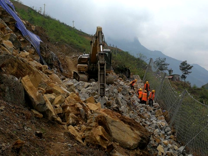 如何在悬崖上方开挖出主桥的施工平台和便道,并且保障县道通行安全,曾一度成了全体管理人员热论的难题。