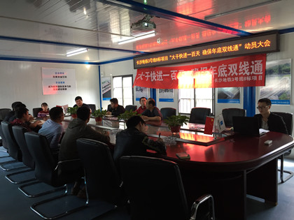 动员会上,项目经理罗世全对大干阶段的工作进行了全面部署,制定了大干期间的详细施工计划,每项任务定时间、定目标、定责任人,明确表示要在确保安全质量的前提下,全员统一思想,齐心协力,加快施工进度,确保完成年底隧道贯通。