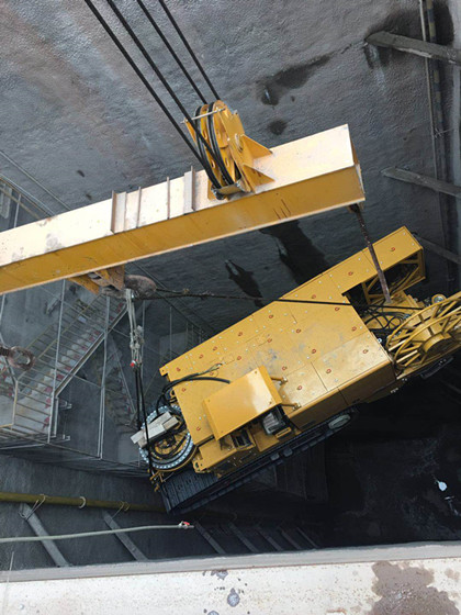 12月5日,中建隧道重庆轨道九号线八标TBM始发井引进的强战力悬臂掘进机,在1#施工竖井“闪亮登场”。