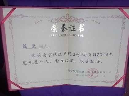 在这里我学到更多的是勇气和责任,我们的会议室看到了吗?我在主持召开成本分析会,人有点多,第一次很紧张,但是最后我完成了;还有第一次的每月之星评比我也入选了;2014年我获得了上级公司授予的“先进个人“荣誉;其实本来评选的是我们项目经理柳总,最后他把名额给了我,我很感谢他,感谢他的信任和厚爱。他是个对工作一丝不苟的人,相信在他的带领下我们项目会越来越好,也希望我能成为对项目对五局有价值的人,希望我可以成为您的骄傲。