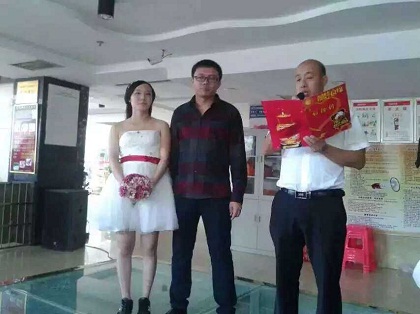 “今天,是李静先生和刘蓉女士的婚礼,由于种种原因,很幸运能够见证这一个这对新人的幸福时刻,虽然亲人不在身边,但是我们胜似亲人,最后希望一对新人幸福美满”