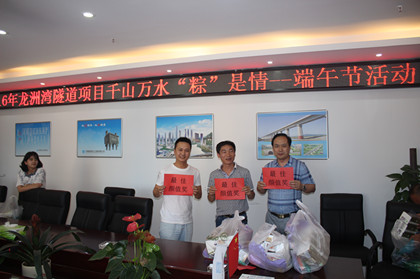 颁奖仪式  热火朝天地包粽子 浓情端午节,粽香飘巴南。为了庆祝龙洲湾项目的第一个“龙舟节”,更为了增强员工凝聚力,丰富员工生活,在端午佳节即将到来之际,隧道公司龙洲湾工程指挥部与重庆茂和基础设施建设有限公司(项目公司)共同开展了一场“迎端午、包粽子比赛”活动。 6月7日下午4点,项目食堂里热闹起来,排列整齐的餐桌上摆好了准备好的糯米等材料。近20名员工自由组队,围坐在餐桌旁开始包起粽子。员工们个个全情投入、队员间相互协作、队与队之间也交流着包粽子的技巧,大家包得不亦乐乎。“你这包的是手枪吧!”不知是谁开玩笑指着一人手中“手枪型”的粽子说,大家都跟着哈哈大笑起来。时间一分一秒地过去,随着各支队伍将盘中的糯米包完,比赛正式结束。各队将自己所在队伍的作品都用盘装好,等待大家的评判。各队作品可谓造型各异,各具“特色”: 有的像钱包,四四方方;有的像拳头,不成规则;还有三角形、锥形,各不相同。大家都指着盘中的“怪物”乐呵呵地问着这是谁包的,那又是谁包的,因为它们都是那么的“有型”。一番点评,又引得哄堂大笑。 包粽子比赛还特别设立了一个奖项叫做“最佳颜值奖”,最后有三名员工获得此殊荣。 龙洲湾的第一个“龙舟节”,大家学习了如何包粽子。活动传承了中华文化,增强了员工凝聚力,培养了员工集体意识,丰富了员工生活,体现了龙洲湾项目“家”的氛围,展现了五局“信和”文化的核心理念。(文/隧道公司龙洲湾隧道工程指挥部:何智)