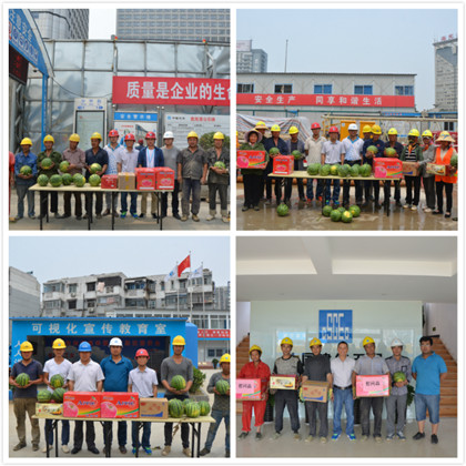 慰问活动照片 万水千山“粽”是情,为了让施工一线的工友过上一个愉快祥和的端午节假,2016年6月8日,徐州地铁项目安全总监易斌、各工区工区经理组成节日慰问小组,分赴西安路、彭城广场、文化宫站、火车站站慰问节日期间奋战在施工现场的一线工人,并为他们送去了节日的问候和粽子、咸鸭蛋、时令水果等慰问品。 安全总监易斌把粽子、咸鸭蛋等节日礼物送到每个劳务工人手中,在祝贺大家节日快乐的同时叮嘱大家在现场施工一定要注意安全,注意防暑降温,户外施工一定要及时调节作息时间,避开高温作业。 为了切实保障广大职工身心健康和人身安全,深化公司五同原则, 徐州地铁项目积极开展“防暑降温送清凉”活动,保证施工现场每日防暑降温凉茶不断,定期给工人发放防暑降温药,发放夏季防暑小常识宣传卡片,为下一步施工新高潮切实做到后勤保障有力。(文/隧道公司徐州地铁项目:夏露)