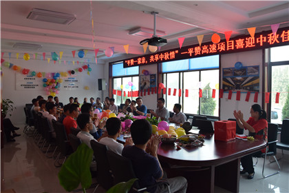 茶话会  四人五足 长空晓月,花好月圆;清风送爽,丹桂飘香。值此2016年中秋佳节来临之际,隧道公司平赞高速项目携手全体员工共同举办了“平赞一家亲,共享中秋情”的节日活动。 下午,项目经理肖玉奇中秋致辞拉开了整个庆典的帷幕,平日的会议室被气球彩带装点着,平日放开会笔记本的桌子上堆满了各种小吃、甜点、饮料以及各式各样的月饼。在茶话会期间,我们精心准备了丰富的节目,在你猜我答的游戏环节中,项目经理亲自参加,平日里不苟言笑的他今天脸上也洋溢着笑容,我想“纵使铁骨铮铮,却也柔情似水”这句话用来形容我们很Man的肖总最好不过;在击鼓传花的游戏活动中,平日里为了我们项目管理人员有一个舒适的办公环境而每天凌晨四点半就要从家起床赶来打扫卫生的保洁阿姨今天也为我们献上了一首月儿动听的歌曲,热烈的掌声表达了我们对他们的感谢;“哇、我抽到一等奖咯耶”,今年刚来项目的新员工小赖已经嘴都笑的合不拢了,这是新员工走上工作岗位的第一个节日,在这万家团圆的节日里,我们并没有因为不能与家人团圆而感到失落,反而更多的是一种感动,领导们的温情关怀、同事们的互帮互助,这一切的一切都激励着我们不断的进不与提高。 茶话会结束后,我们集体移到室外进行户外活动,两人三足、袋鼠跳、夹气球等,经历一番激励的大比拼,人人都获得了丰富的奖品。 随着中秋晚宴的开始,将项目部整个气氛推向最高点,举杯邀明月,共谈儿女情。暂时放下工作的事情,大家边吃边聊,伴随着一张张笑靥、一声声笑语,此次节日庆典在欢乐融融的气氛中圆满结束。让我们共同期盼明年的中秋月圆时!(文/隧道公司平赞高速项目:王朝俊)