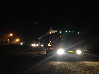 节日架梁中  运梁车匀速前进中 每逢佳节倍思亲。中秋佳节,是万家团圆、喜庆祥和的日子。你的中秋节是怎么过?邀亲朋好友吃团圆饭、举杯赏月,或是和家人外出游玩,还是……可你知道中建五局还有一群人默默无闻的奋战在施工一线,他们的中秋节是怎么过的吗? 9月15日凌晨2点06分,驻站联络员在对讲机中通知:“施工负责人张永红,第197802号运梁作业天窗调度命令已下达,调度命令内容:益湛线廉桥站-邵东站-邵阳东站,准许中国建筑股份有限公司在封锁范围188Km+433m至209Km+900m处进行邻近营业线运梁作业。自接命令时起封锁,限5时10分施工完毕”。施工负责人复诵:“第197802号运梁作业天窗调度命令已下达,调度命令内容:益湛线廉桥站-邵东站-邵阳东站,准许中国建筑股份有限公司在封锁范围188Km+433m至209Km+900m处进行邻近营业线运梁作业。自接命令时起封锁,限5时10分施工完毕。张永红明白”。施工负责人立即下达开始施工命令,6台运梁车同时匀速向娄邵货场联络线跨沪昆高速连接线大桥和怀邵衡货场联络线跨沪昆高速连接线特大桥(以下简称怀邵衡(娄邵)联络线大桥)前进。经过3个小时的长途跋涉,终于顺利到达怀邵衡(娄邵)联络线大桥桥头。为确保运梁车在天窗点内返回梁场,紧接着便开始了架梁施工。施工中,每个人都很清楚自己的岗位职责,无论是半年没有见到妻儿老小,还是天天加班到天亮,尽管节日不能和家人团聚,任何人都没有一句怨言,因为大家心里都很清楚,只有他们的奉献和坚守才能保证项目安全有序的进行。 该联络线大桥全部37孔,需要架设简支T梁74片。是怀邵衡全线唯一的铺轨基地进出通道。怀邵衡(娄邵)联络线大桥的运架梁制约怀邵衡铁路全线铺轨工期,一旦滞后将会影响到怀邵衡铁路全线的工期。因此,广铁集团要求运梁施工必须按照高铁营业线的标准执行。为确保在天窗封锁点内完工,项目部采取增加设备和精心组织等措施,连续奋战的方式施工,克服重重困难,确保营业线运营安全及节点工期的完成。(文/隧道公司怀邵衡项目:聂战辉)