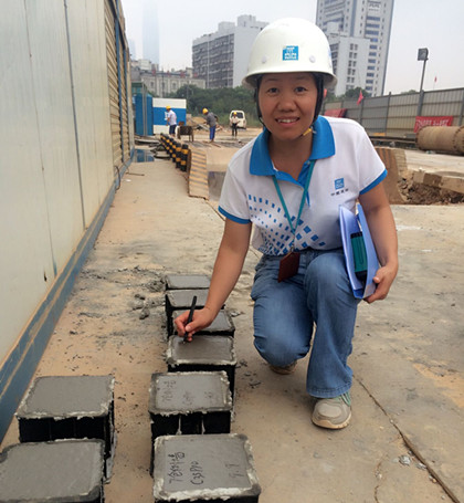 范永红工作照 “你们看我最近有什么不一样吗?”大家都在吃午饭,试验室主任范永红问坐在身边的同事。 “你好像瘦了。” “你是不是戴新项链了?” “你今天有什么喜事吗?” …… “都不是,你们没发现我晒黑了吗?”她这么一说,大家都看出来了,她真的晒黑了不少…… 长沙地铁4号线项目溁湾镇站南端头要在9月30日具备盾构始发条件,项目部正在争分夺秒地冲刺9·30节点目标,施工现场大干快上的关键时期,项目上的同事除了吃饭时偶尔能坐在一起外,其他的时间都在各自岗位干工作或者往现场跑,施工员就干脆不回来吃饭,食堂直接送盒饭到现场去,有的同事上晚班,有时候半个多月都难见一次面。 范永红是项目试验室主任,每天大量委托书、检测报告、台账等资料要核查,原材料、砼试件要取样、送检。她还经常要跑到28米深的基坑,观察基坑土质和围护结果是否有异常裂缝;观察砼浇筑施工过程,指导操作工人行为规范,拍摄各工序的照片。 她像“汉子”一样上、下、来、回地走,尽管她的身高只有154厘米,但比许多年轻小伙子走路都快。为了能完成更多的工作,她经常小跑。为了控制好砼质量,她亲自动手测砼坍落度,制作试件;站在罐车卸料处和天泵上观察砼和易性,她目测砼坍落度和实测坍落度偏差在±10㎜内。身上总会溅有水泥浆,脸上也不例外。三伏天全身湿透,头发就像刚洗完一样,满面汗水直流。她一年四季喜欢穿裙子,但是今年这个夏天,她几乎每天都是穿裤子,因为每天都去现场。而且她常向农民工询问工作、生活上的事情,关心农民工的生活和心理。 从2015年7月至今,溁湾镇站试验工作一直走在前面,4号线第一个建设好标养室和操作室;第一个编制好试验检测方案;第一个芯片录入。监理部要求各项目部试验室向她学习。她还指导商品砼公司和检测公司的试验人员计算每方砼总碱含量、氯离子含量、三氧化硫含量。大家称呼范永红为“大姐大”,连长沙地铁4号线一标指挥部分管试验工作的执行指挥长兼总工程师陈俊都对她刮目相看,经常安排她参加“配合比优化专家讨论会”,“管片配合比方案讨论会”等专题会议。 每一个岗位的职责不一样,像范永红这样,尽心尽职地把试验室工作做到极致,最美的地铁女职工当然也非她莫属。 “范姐,我能给你拍张照片吗?” “呀,我最近肤色不太好,拍出来不好看。” “我用美颜相机帮你拍好吗?” “哈哈,好啊!” (文/隧道公司长沙地铁4号线项目:谭梓妮)