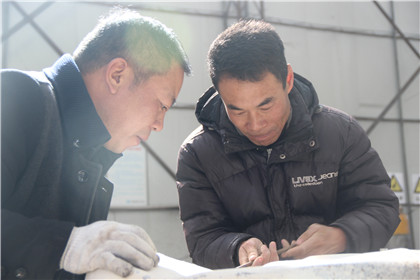 刘宝华和物资设备部吴艳生部长一起修理汽车配件