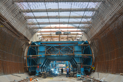 边墙台车 隧道公司济青高铁项目施工范围处于在建的胶东国际机场,自进场以来,项目部积极响应业主跑步进场号召,克服前期征地拆迁难题,创造条件率先开工,在1月底完成全标段首个标准化钢筋加工场建设,于2月底展开隧道围护桩施工,6月份开始隧道主体结构仰拱施工。 隧道公司济青高铁项目全体员工始终以“高标准起步,高效率推进,高质量达标”为指导思想,连续蝉联一季度“百日劳动竞赛”和二季度“三保双过半劳动竞赛”冠军宝座。项目开工至今已完成全线(2.4Km)围护结构围护桩、冠梁等施工,完成土方开挖43.6万方,占设计总量的58.9%,机场隧隧道主体结构施工分为仰拱、边墙及拱顶三步完成,目前已完成隧道明挖段开挖见底570m,仰拱施工380m,为保证后续工序正常施工,保障月度施工进度,在本月仰拱施工的同时大力投入边墙台车安装,最终在本月29日底完成了边墙台车安装,为后续施工提供了保障。 据统计,项目开累完成产值1.75亿,完成全年计划的52.4%,实现了“时间过半,任务过半”的生产目标。目前机场范围内机场、高铁、地铁均已开工,相互之间交叉施工工序复杂,后期施工相互之间协调难度大,接下来团队需要更加坚定的信心,迎难而上,全面展开隧道主体衬砌施工,保证后半年施工生产任务的顺利完成,确保高质量、高效率达成全年生产目标。(文/隧道公司济青高铁项目:王小江)