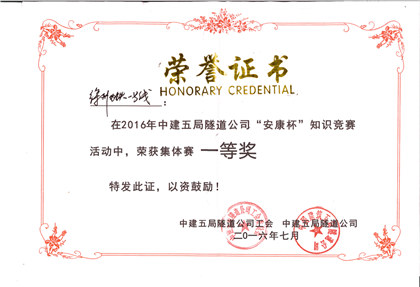“安康杯”团体第一名奖状 为丰富安全生产月活动,落实安全教育,掀起学习安全技术知识的热潮,增强全员安全生产意识,营造良好的安全生产氛围,提高安全管理水平,隧道公司举行了“安康杯”知识竞赛活动。 此次竞赛,徐州地铁项目的口号是“徐州铁人,披荆斩棘,勇往直前”,荣誉是属于有准备的人的。而安全生产一直是徐州铁人团队放在第一位的,就安全来说,那么徐州铁人就是时刻准备着的。我们有着强大的铁人团队做后盾,每一个人从进入这个团队,就必须要有着“安全第一,预防为主,综合治理”的思想。就这样寒来暑往,从不间断,从而把这些融入到了心底。 回到徐州,听到部长雷阳说着团体赛经历了加时,心中也不禁回想当时的激烈场景。也让我了解到在全部都是高手中取胜是多么的不易。而铁人团队最终不负众望,获得了“团体赛第一”“个人赛第三”的荣誉。 荣誉只是一种助推器,他会让铁人团队不骄不躁,始终保持认真的态度对待安全生产,踏踏实实的往前走。竞赛已经结束,可是安全生产永远不会画上句号。让我们永远鞭策着自己,不断努力,不断前行。(文/隧道公司徐州地铁项目:庄中华)