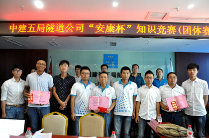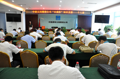 个人赛笔试考场  获胜团队合影  团队比赛中  安全知识座谈会 2016年安全生产月活动主题是“强化安全发展观念、提升全民安全素质”,为丰富安全生产月活动,落实安全教育,掀起学习安全技术知识热潮,7月28日,隧道公司安全监督部联合隧道公司工会、党群工作部、综合办公室、工程技术部成功举办“安康杯”知识竞赛活动。 安康杯知识竞赛分个人赛和团队赛两部分,其中个人赛采用100分制的闭卷形式,笔试内容涵盖国家安全法律法规和总公司、局、隧道公司的安全管理制度等;团体赛分为必答题和抢答题,每个项目选派3人参加,以3人组队的方式参加,为了增加比赛的趣味性,抢答题环节利用了先进的抢答器,对于抢答犯规和答错的,取消本道题的抢答资格。同时,在团体赛环节,为了提升士气,各项目别出心裁用响亮的口号迎接挑战,如雀儿山隧道项目的“海拔高斗志更高,缺氧不缺安全”,缙云山隧道项目的“幸福是棵树,安全是沃土”,龙洲湾隧道第一项目部的“安全生产大如天,法规制度记心间”等。 通过一天的激烈角逐,来自中梁山项目的沈付生、武隆大桥项目的包南海、徐州地铁项目的雷阳分获个人赛一、二、三等奖;徐州地铁项目、长沙地铁5号线五项目、渝黔铁路三工区分获团体赛一、二、三等奖。 通过此次“安康杯”知识竞赛活动,增强了公司员工学习安全知识的兴趣,扩大了职工的安全知识面,提高了职工的安全意识,营造了隧道公司良好的安全文化氛围,达到了以赛促学的目的,并提高了公司全体安全管理人员的凝聚力。(文/隧道公司:郑金宇)