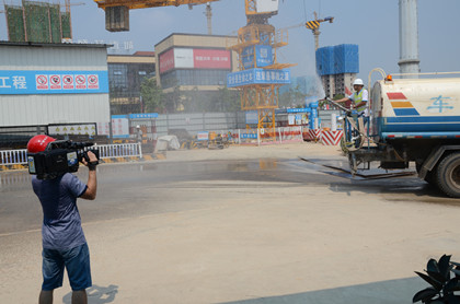 记者采访协调经理李勇泉  记者拍摄高温下作业工人  记者拍摄作业洒水车 8月1日,针对烈日下的高温作业,长沙电视台新闻频道到隧道公司长沙地铁5号线项目,对高温条件下施工作业防护措施进行现场专访。 长沙七、八月份室外最高温度达39摄氏度,地面温度可达到50摄氏度,持续高温天气,对室外高温作业人员而言,是个巨大的挑战。隧道公司长沙地铁5号线项目部关爱高温下作业的工人,积极采取各项防暑降温措施。 现场施工避开高温时段作业,避开上午10点到下午4点日照最强时段。施工现场一台洒水车,沿着工地两旁的便道,一边穿梭,一边洒水;一台车,一天要洒一二十次水,洒水的作用,主要是降温降尘 。现场的围挡喷淋降尘系统,持续作业,有效地解决施工围挡范围内的清洗和高温防尘问题。 项目部每日对施工现场医务室防暑物资填补,保证防暑物资充足;施工过程中,尽可能的调整劳动组织,采取勤倒班的方式,缩短一次连续作业时间,加强工作的轮换休息;项目部还特别为施工现场增加茶水间的配置,保证饮用水充足,休息期间还可以吃上甜甜的西瓜;有效的防暑降温,避免发生中暑事件。 长沙电视台新闻频道的记者采访后称赞:高温作业工人值得尊敬,项目部防暑降温措施做的很到位,让高温作业工人倍感温暖。长沙地铁5号线项目部将继续增强防暑降温的措施,加强保障现场高温作业的管理人员及工人的身心健康。(文/隧道公司长沙地铁5号线项目:刘静)