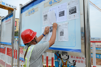 安全人员粘贴曝光单 “一号钢筋班组作业现场保持良好,场容场貌、文明施工执行情况良好,对一号钢筋班组奖励500元。” “1、3号钢筋班组在加工过程中,钢筋废料随意堆放,施工现场脏、乱、差。对三号钢筋班组罚款500元。” “2、4号塔吊基础钢筋绑扎施工中,三名施工人员不带安全帽,不穿反光背心,对其负责公司罚款300元。” “灌注桩砼施工过程中,灌桩班组野蛮施工,一次性拔出4节导管,存在极大安全隐患,对其负责公司罚款500元。” …… 为进一步加强安全文明建设,提高大家的安全意识,隧道公司长沙地铁5号线蟠龙站在现场设立安全宣传栏、表扬栏和曝光栏。 表扬栏表彰工人优秀表现,以此鼓励大家注意安全生产,树立样板,争取各班组向先进学习。曝光栏主要是曝光施工生产中工人的一些不文明,不规范,不安全的施工生产行为。对工人的一些不良行为及习惯予以曝光警示,让工人们能够引以为戒,绝不再犯。 安全宣传栏成立以来得到大家的一致认可和肯定的同时,现场施工人员的安全素养显著提高,也意识到了安全施工生产的重要性,现场的一些施工陋习得到明显改善。提高安全作业环境水平,保障现场施工人员的安全与健康,倡导绿色施工使我们每一个人义不容辞的责任。(文/隧道公司长沙地铁5号线项目部:尹辉)