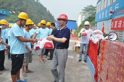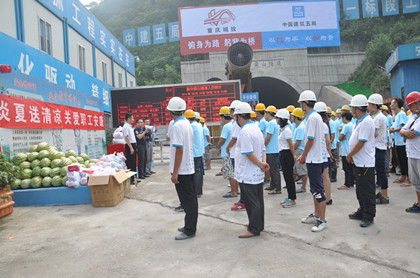 发放清凉物资  市交通建设工会主席温中正在讲话 素有火炉之称的重庆,入夏便开启了桑拿模式。近日来更是持续高温,奋战在施工一线的劳务人员牵动着领导的心。8月10日早上,重庆市交通建设工会主席温中兵一行来到了中梁山扩容改造项目,开展“送清凉,保安康”活动,心系基层苦,一线送清凉,为正在作业的一线员工送去了西瓜、藿香正气液、凉茶等清凉物资,让炎炎夏日坚守在高温岗位的职工们感受到了丝丝凉意,隧道公司总会计师兼工会主席苏立强,党群工作部部长谭婕、项目领导班子参加活动。 据了解,中梁山扩容改造项目地处素有“地质博物馆”之称的中梁山脉。施工情况极其复杂,社会关注度高。工期紧、任务重,广大员工为保工期,战高温斗酷暑,顶着炎炎烈日奋战在施工一线。基于此,温家兵对奋战在施工一线的劳务人员进行了亲切的慰问,对这种战高温、斗酷暑的精神表示了肯定和赞赏。温家兵叮嘱项目部:“要切实做好高温作业安全措施,合理安排作息时间”并强调:“夏季是中暑高发季节,要认真服务好职工,保障职工身心安全,让大家健康生活、舒心工作。” 活动后,劳务人员纷纷表示切实感受到了领导的关心和公司的关怀,他们将以更加饱满的热情和超常的干劲投入到生产经营工作去,为隧道的贯通鼓足干劲,画好这浓墨重彩的一笔。(文/隧道公司中梁山扩容项目:曹杰)