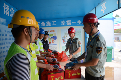 慰问小组给工人代表送防暑物资 2016年8月12日,受共青团长沙县委委托,长沙县行政管理局成立慰问小组,奔赴一线慰问高温天气依然坚守岗位的地铁建设者。 在隧道公司盾构分公司长沙地铁5号线项目部施工现场,慰问小组给现场施工的工人带来了绿豆、王老吉、专业施工作业包。慰问小组组长黄旭指出:“高温天气,一定要注意作业工人的防暑降温问题,保障施工人员的健康安全问题;地铁修建属于便民服务,但是修建期间一定要注重周边的卫生问题,完善文明施工。” 此次慰问活动,使奋战在一线的员工们都倍受鼓舞、倍感贴心,纷纷表示将继续尽心尽力做好本岗位工作,为长沙地铁修建工作做奉献自己一份力。(文/隧道公司盾构分公司长沙地铁5号线项目部:刘静)