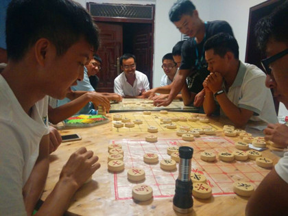 龙洲湾三分部第一届象棋争霸赛现场 2016年8月14日晚,为丰富员工业余生活,加强新老员工的互动交流,贯彻落实 “以人为本,拓展幸福空间”的理念,提升员工的幸福感,在项目部的大力支持下,隧道公司龙洲湾项目三分部组织开展了“我是棋王——龙洲湾三分部第一届象棋争霸赛”。 下午7时许,负责本次比赛后勤工作的员工早早地摆好了棋局。本次比赛采用单循环淘汰三局两胜制,16名选手抽签捉对厮杀,胜者再进行单轮淘汰赛,最后两名选手进入总决赛,争夺“棋王”桂冠! 比赛一开始便进入白热化阶段,看雄兵健卒,孤身强渡显威风;转眼又见骏马英姿,昂首长嘶抖怒鬃。参赛选手或挠头,或托腮,或疑虑,或沉思。有成竹在胸者,喜形于色,却忽闻炮声震天,大惊失色;有深谋远虑者,运筹帷幄,策马驱车,处变不惊,楚河汉界狼烟浓烈!旁观者也是摩拳擦掌、跃跃欲试,更有甚者,现场报名,冲入厮杀战阵。将帅运筹,相士同谋,好一幅看神州大地,谁主沉浮之盛景! 最后经过两个多小时激烈的较量,“小鲜肉”侯德聪代表新员工杀入决赛,而另一席位则被“老军师”王安民占据。决赛盘,吸引了一大群围观观众,而战况亦是精彩纷呈。高手过招,一着不慎,满盘皆输!没有大开大合的拼杀,取而代之的是深谋远虑,运筹帷幄,决胜千里。最终,经过近一小时的鏖战,“老军师”棋高一着,三卒过河,衔枚直逼黄龙府,“小鲜肉”侯德聪虽有千里马,奈何独马难支,遗憾败北! 赛后,同事们对本次比赛的精彩对局也是津津乐道,新老员工之间也都相互交流着自己的见解。小小一盘棋,盘活的是项目员工的感情,增强的是整个项目的凝聚力!(文/隧道公司龙洲湾项目部:李星)