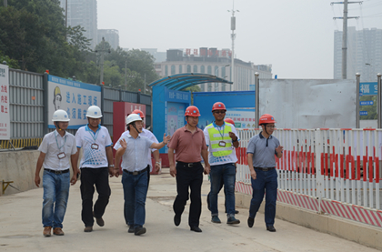 车站南端基坑开挖已见底  项目经理罗栋为都兴民介绍蟠龙路站施工进展 8月23日,中建股份基础设施事业部副总经理都兴民到隧道公司长沙地铁5号线二标五工区项目部调研指导工作,二标工程指挥部班子、项目部班子陪同。 都兴民一行深入项目施工一线视察工作,并认真听取了项目经理罗栋对目前施工进展的介绍。都兴民对项目部进展表示肯定,蟠龙路站是5号线最大的车站,南北两端都承担着盾构始发任务,必须按时完成盾构始发节点。全体管理人员要克服艰难险阻,向各节点目标发起进攻,勇争第一。同时,在高温天气要做好防暑降温施工作业,把安全生产放在第一位。 长沙地铁5号线项目施工任务包含一站八区间,其中蟠龙路站位于万家丽北路与蟠龙路交叉路口,长约477.3m,是长沙地铁5号线工程最长最大的一个车站,车站地质变化较大、地面交通繁忙、地下管线复杂、周边建筑物多、拆迁难度大、高压线上跨车站、施工作业净空很大程度被压缩,施工难度和风险都非常大。 据悉,项目部跑步进场后,仅用20天完成驻地选址建设工作,蟠龙路站提前15天开始施工全线第一根围护桩。5月27日开始土方开挖施工,现已进入主体结构施工阶段,车站南端基坑开挖已经见底,北端砼支撑作业基本完成,正在进行下部土方开挖,确保能按时提供车站南北两端盾构始发条件。盾构施工方面,目前正在施工有三一大道站北端头加固、湘龙路站北端头加固,蟠龙路站北端头加固与朝阳站南北端头加固近期已经陆续开始施工。 今年是局“十三五”开局之年,作为基础设施建设者,项目部将不等不靠、主动作为,担负起“两个排头兵”的重要责任,为“千亿五局、两个排头”的战略目标的实现做出新的贡献,开启“长沙速度”。(文/隧道公司盾构分公司长沙地铁5号线项目部:刘蔚)